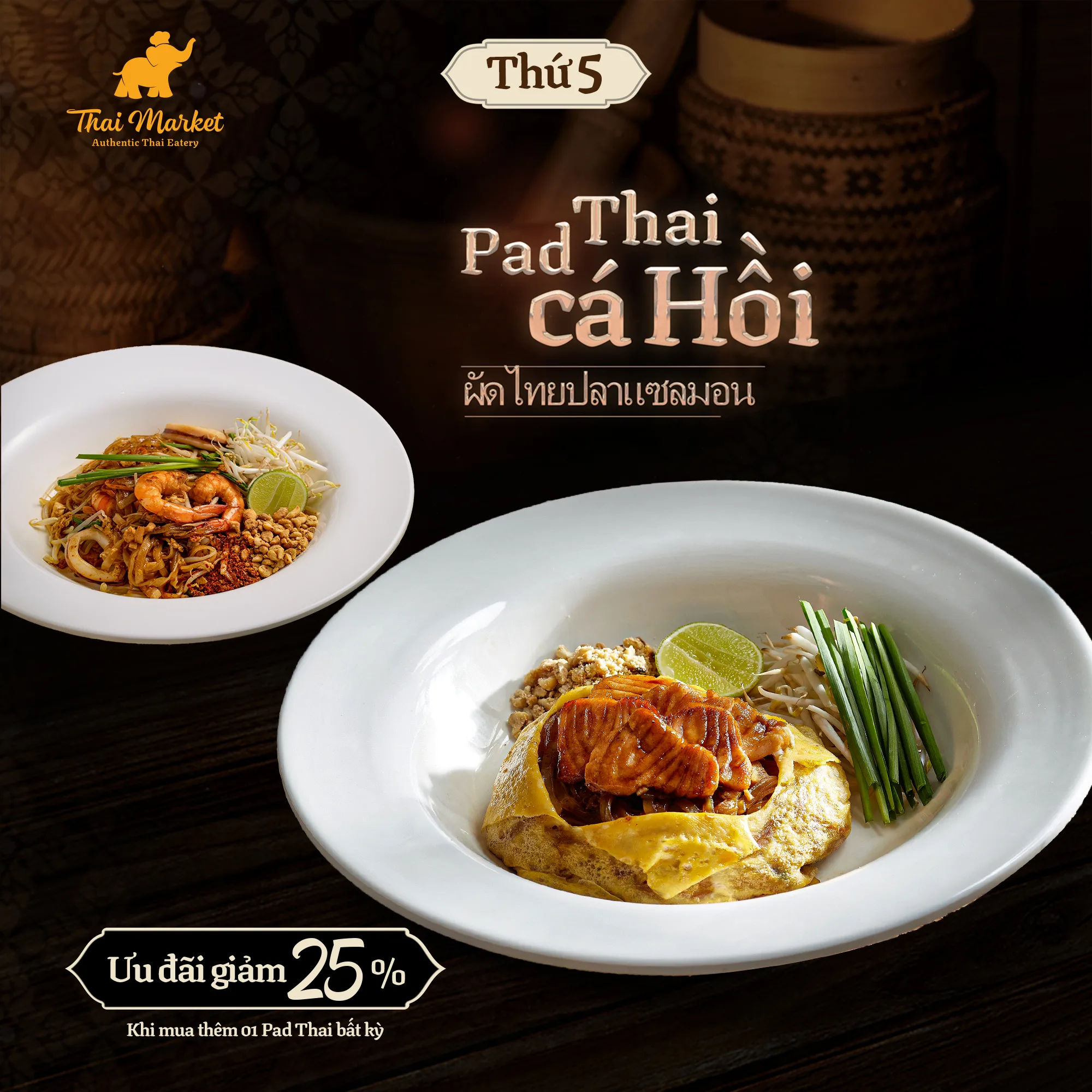 Mua 01 Pad Thai Cá Hồi được mua thêm 01 Pad Thai bất kỳ giảm giá 25%.
