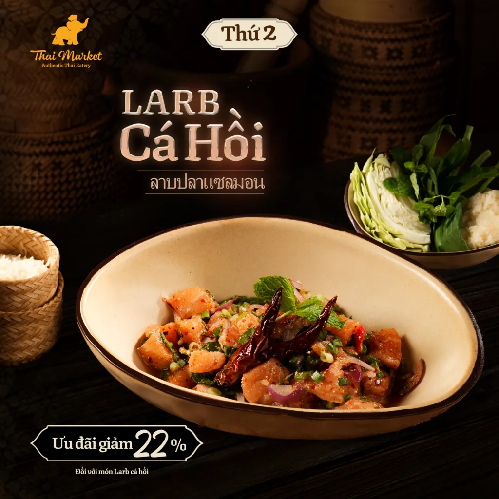 Giảm tới 22% giá bán món Larb Cá Hồi.